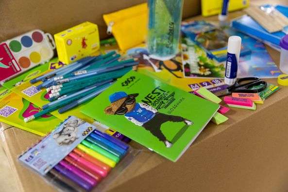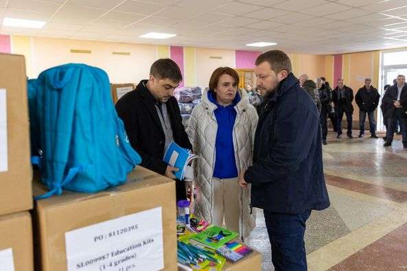 Сьогодні начальник Тернопільської ОВА Володимир Труш передав громадам області 1400 рюкзаків від дитячого фонду «Юнісеф». Кожен наплічник містить повний набір канцтоварів необхідних для навчання: щоденник, зошити, фарби, пляшку для питної води, пластилін, ручки, фломастери, ножиці, клей, олівці.