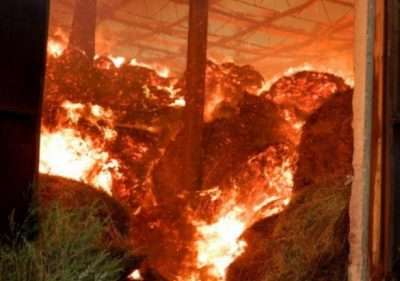 Внаслідок пожежі знищено: покриття та перекриття будівлі та 2 тонни соломи.