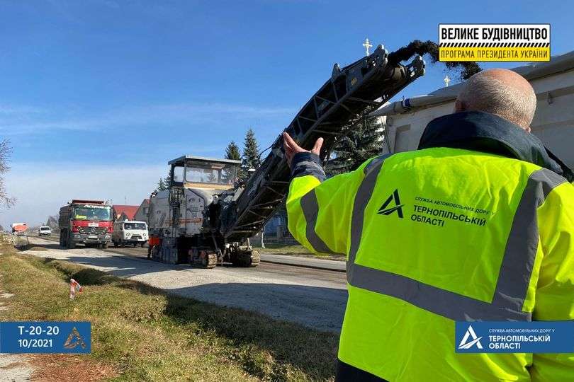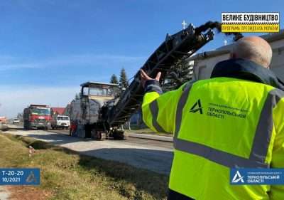 Одразу дві спецмашини проводять фрезерування старого зношеного покриття. Заплановане укріплення основи дороги, влаштування 2 шарів асфальтобетону. Не забудемо і про інфраструктуру: у населених пунктах буде освітлення та тротуари.