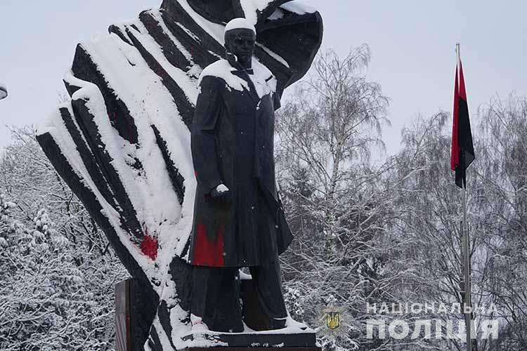 14 грудня об 12.11 невідома особа пошкодила пам’ятник Степану Бандері, що по вулиці Соломії Крушельницької у Тернополі.  Монумент було облито червоною фарбою.