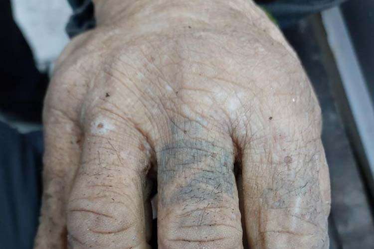 Загиблому на вигляд 50-60 років, худорлявої тілобудови, ріст 155-160 см, волосся темного кольору, має лобні залисини, обличчя овальне. На руках набиті татуювання у вигляді каблучки на середньому пальці правої руки та факелу у руці, що горить на правому передпліччі.