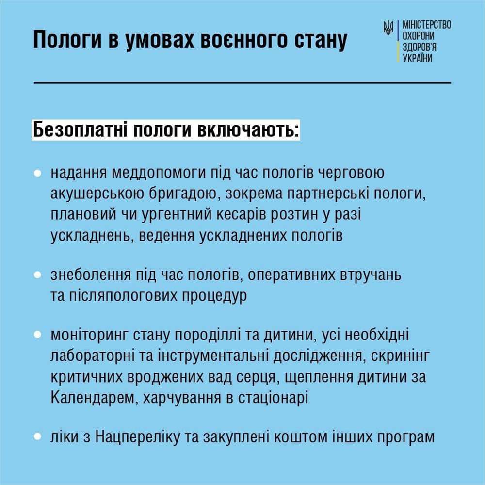В інфографіці #МОЗ інформація, що включають в себе безоплатні пологи