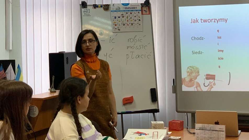 “Ми працюємо за курсом з 0 на Б1. Програма розроблена в нашій школі “Моя польська”. Вчимося за нашим підручником. Основна мета – підготувати молодь до вступу в польські заклади освіти”.