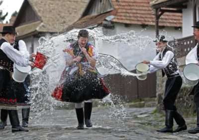 Хлопці обливають дівчат водою, щоб вони очистилися