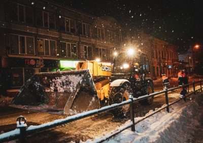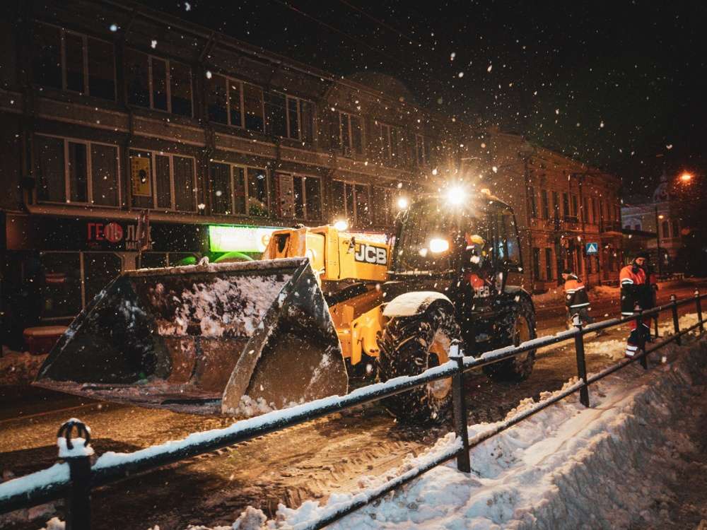Цієї ночі 64 одиниці спецтранспорту, серед яких піскорозкидачі, трактори, автогрейдери, навантажувачі, самоскиди і мала тротуарна техніка, а також більше 100 працівників з бригад ручного прибирання, прогортали і підмітали проїжджі частини та пішохідні ділянки, вивозили сніг і посипали дороги протиожеледними матеріалами.
