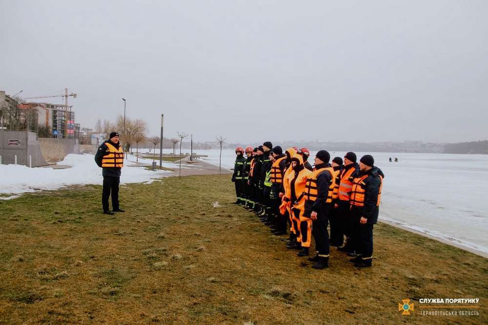 На кризі Тернопільського ставу сьогодні, 3 березня, відбулись навчання з елементами відпрацювання навиків порятунку потерпілих.