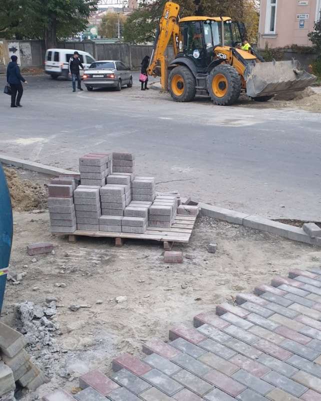 У Тернополі на вул. Парковій замінюють тротуарне покриття та влаштовують вуличне освітлення.