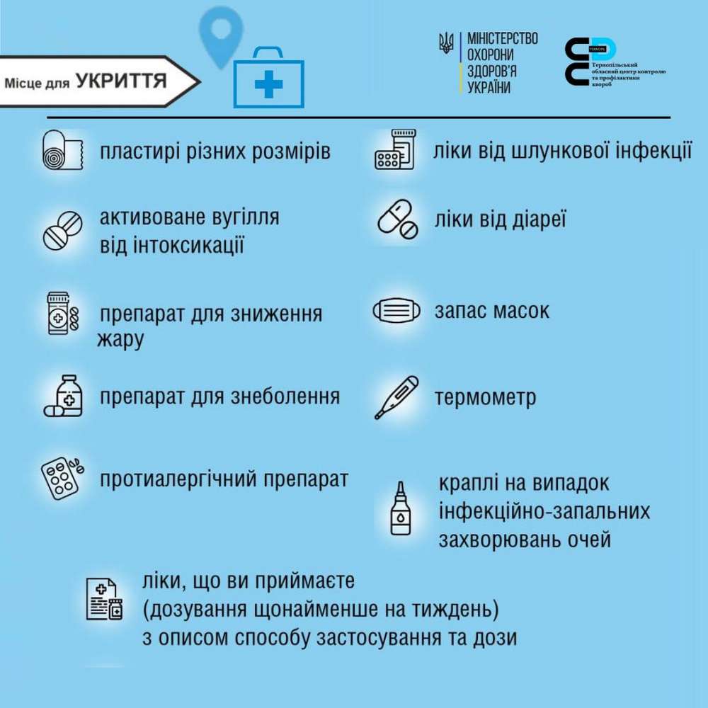 За рекомендаціями МОЗ, в аптечці повинні бути такі препарати: