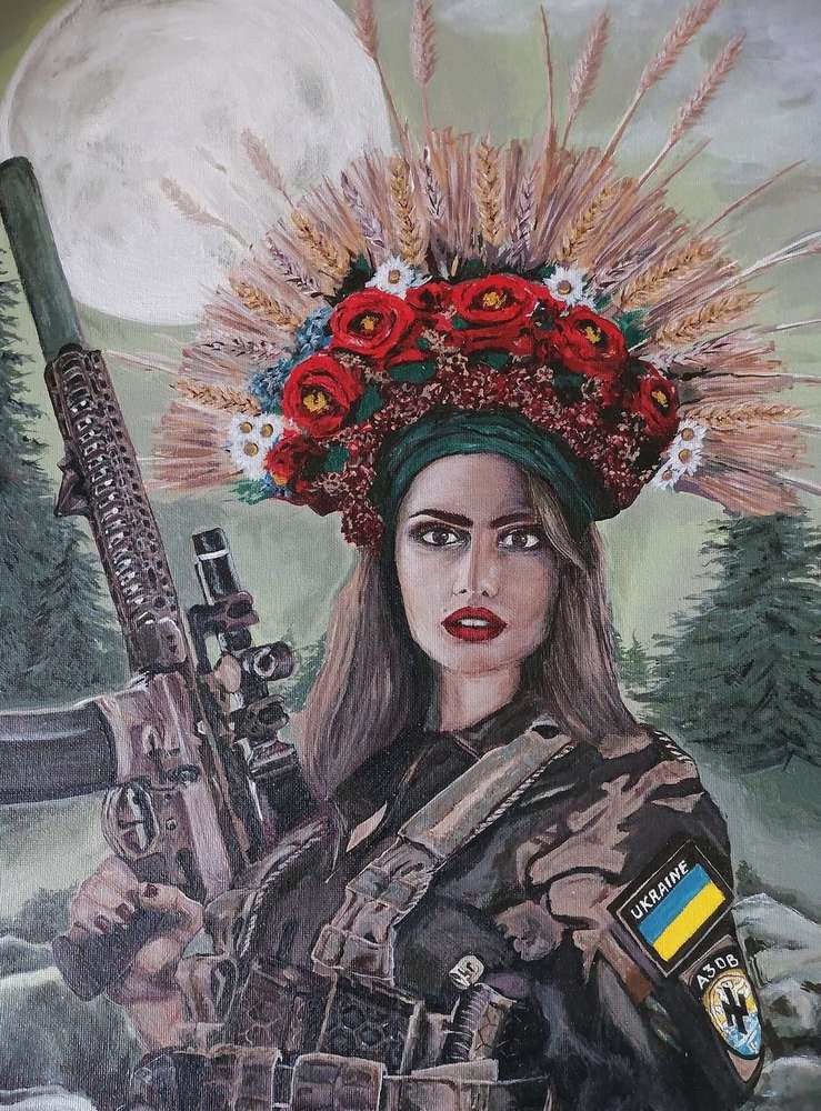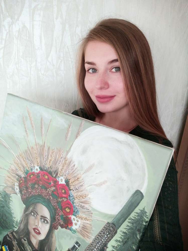 Тернопільська художниця Катя Люпай виставила на продаж картину. Виконана робота акриловими фарбами на бавовняному полотні. Виручені за продаж картини гроші тернополянка спрямує на допомогу бійцям. Художниця каже, робота над картиною була кропіткою, але натхненною.
