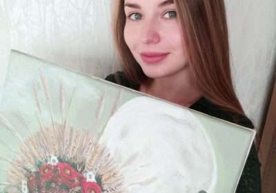 “Виставляю на продаж ще одну свою картину, яка продовжує тему жінки як уособлення нашої України. Такої красивої, тендітної, але сильної водночас. Незламної, заквітчаної, яка поки що переживає тривожну ніч, але обов’язково дочекається того переможного світанку“, – ділиться художниця.