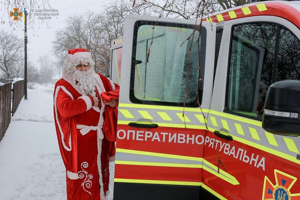 Переодягнена у костюм ельфа вона, разом із співробітниками головного управління ДСНС у Тернопільській області, відвідала дитячі будинки сімейного типу Тернопільського району.