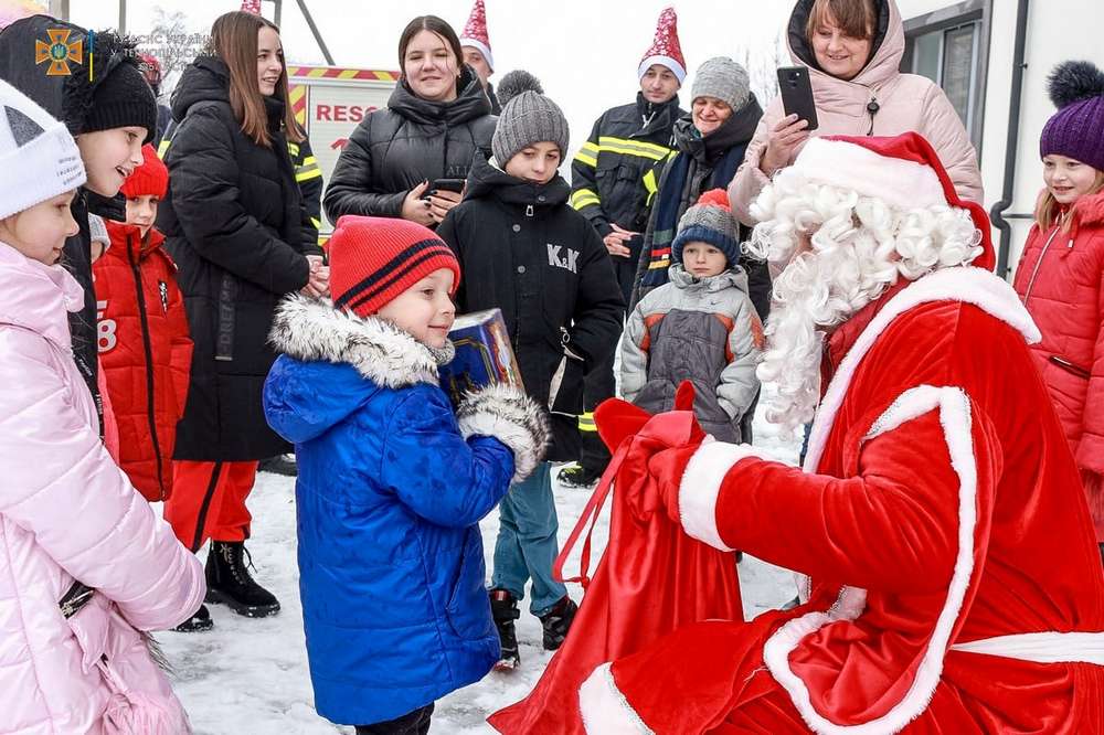 На завершення свята чарівний Миколай-рятувальник вручив діткам солодкі подарунки.
