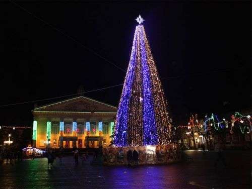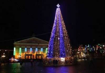 Головну новорічну красуню міста урочисто засвітять о 16:30 на Театральному майдані. Крім того, сьогодні відбудеться освячення Різдвяної шопки та відкриття ярмарку.
