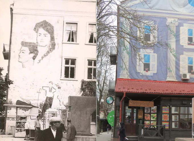 А ця мозаїка і досі є на будинку біля «Перемоги», однак її приховує банер. Тернополяни згадують, як її створювали.