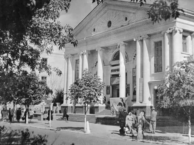 Ось так виглядала будівля 1954 року. На ній можна побачити радянські символи.