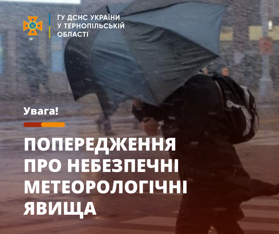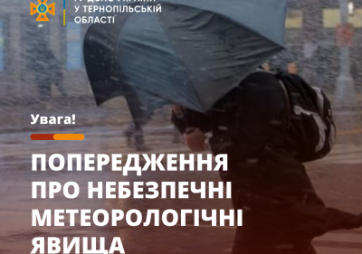 «5 січня в Тернопільській області та в м.Тернопіль вночі місцями очікуються пориви південно-західного вітру, 15 – 20 м/с», – йдеться в повідомленні Управління ДСНС у Тернопільській області.
