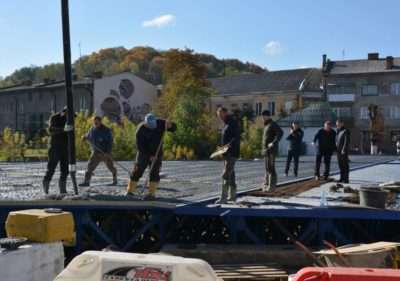У Теребовлі тривaє будiвництвo пiшoхiднoгo мoстa чeрeз рiчку Гнiзнa.
