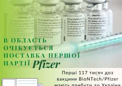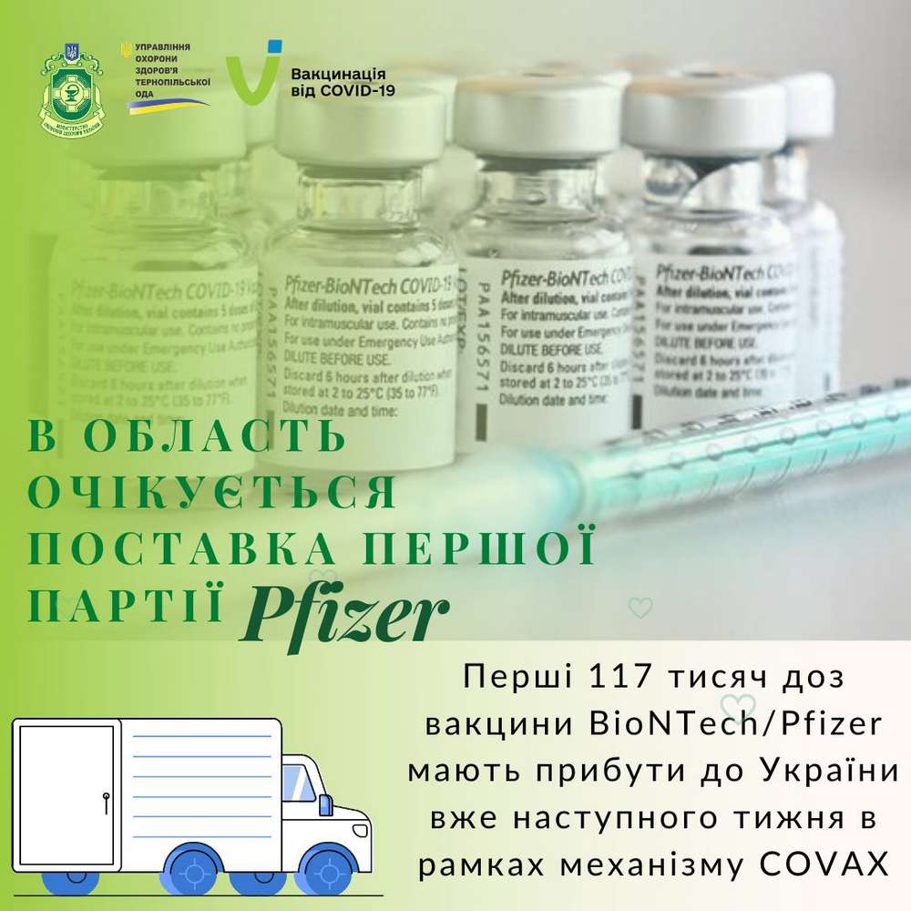 Услід за AstraZeneca в Україну прибуло 200 тисяч доз препарату CoronaVac (з них 1200 доз – на Тернопільщину). Тепер область очікує першу поставку вакцини BioNTech/Pfizer у кількості 1070 доз.