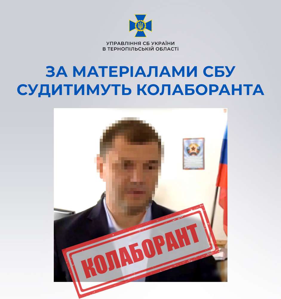 Досудове розслідування протиправної діяльності зрадника завершено слідчими Управління СБУ в Тернопільській області. Зловмисник обвинувачується за ч.5 ст. 111-1 (колабораційна діяльність) Кримінального кодексу України. Матеріали кримінального провадження з обвинувальним актом слідчі СБУ