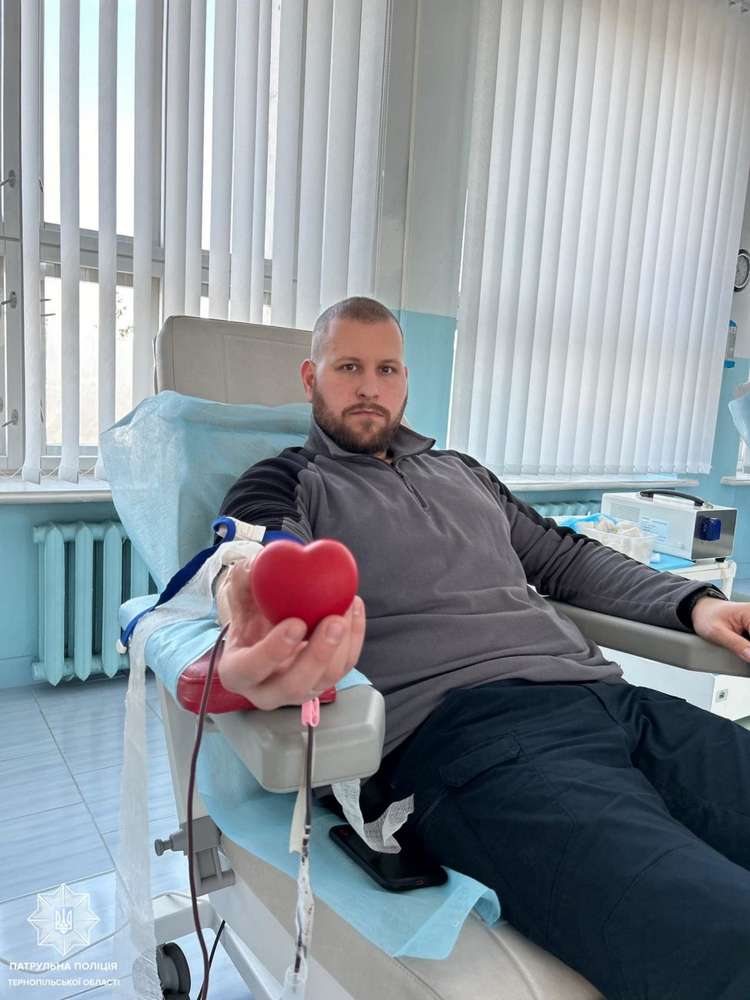 Тернопільські патрульні стали донорами крові. До цієї справи правоохоронці долучаються систематично, аби допомогти врятувати життя іншим.