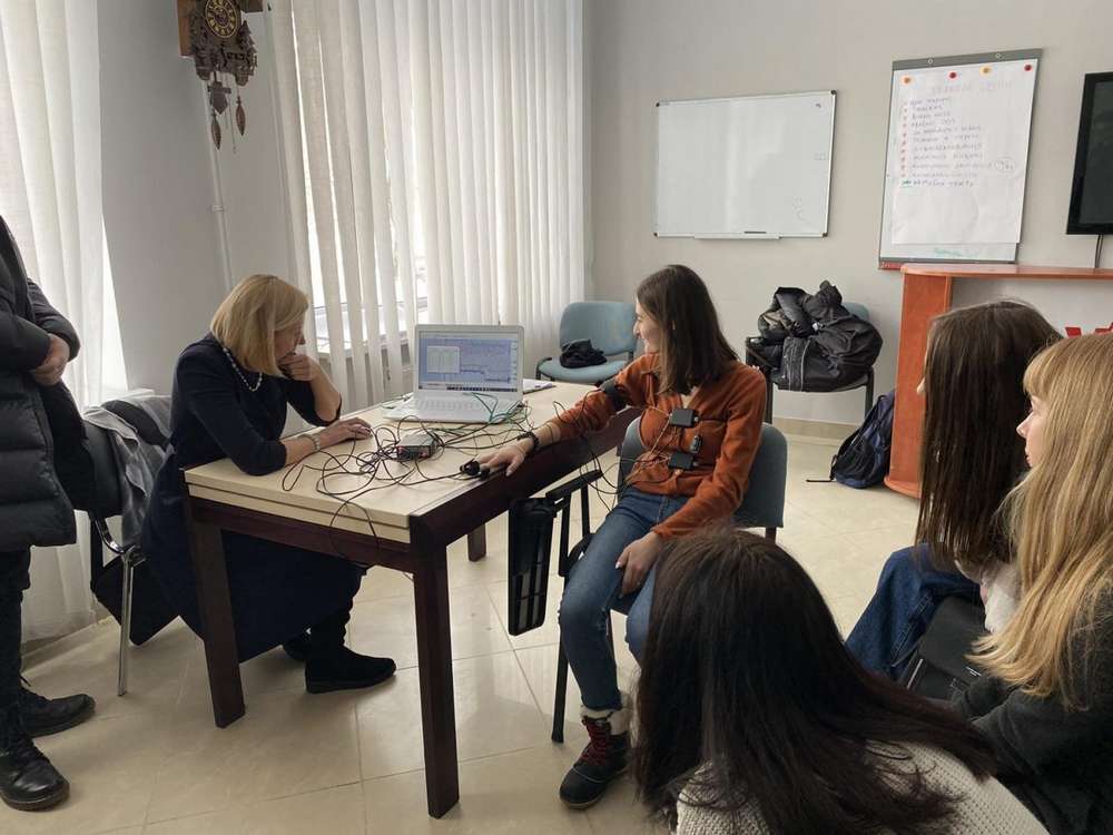 Поліграфолог агенції Анна Мокрицька детально розповіла про особливості застосування поліграфа, продемонструвала його роботу. Студенти мали змогу на собі випробувати функціонування приладу та спостерігати реєстрації психофізіологічних реакцій.