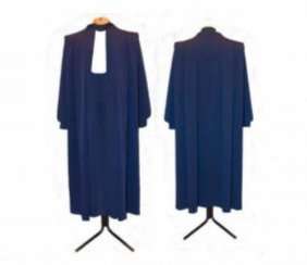 Мантії нового зразка виготовлено з тонкої костюмної тканини синього кольору. У комплект суддівського вбрання також входить біле жабо із штучного шовку. Термін використання комплекту з однієї мантії та п’яти жабо становить 3 роки.