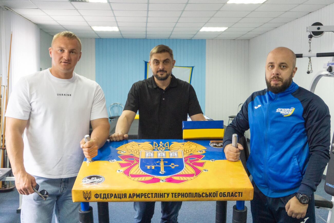 Заступник начальника Тернопільської ОВА Віктор Устенко спільно з представниками Тернопільського обласного центру фізичного здоров’я населення «Спорт для всіх» передали професійний стіл для армрестлінгу Тернопільській федерації армспорту.