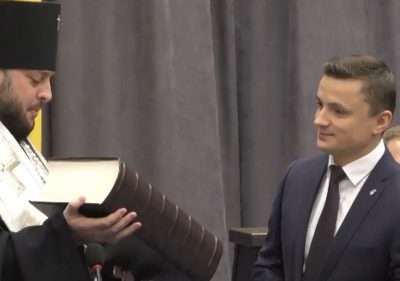 Голові обради Михайлу Головку копію стародруку вручив керуючий Тернопілсьької і Бучацької єпархії ПЦУ архієпископ Тихон (Петранюк).