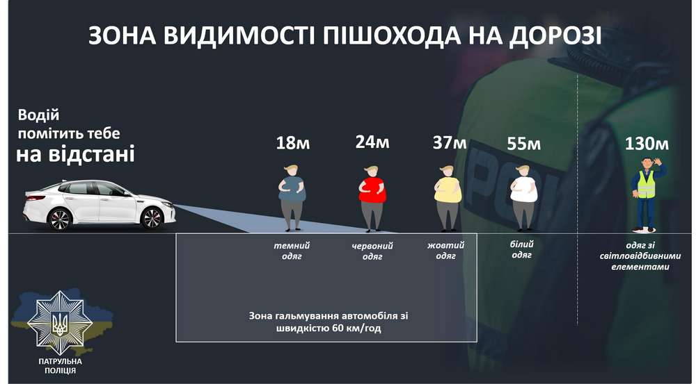 Щоб залишатися помітними у темний час доби варто дотримуватися простих правил: