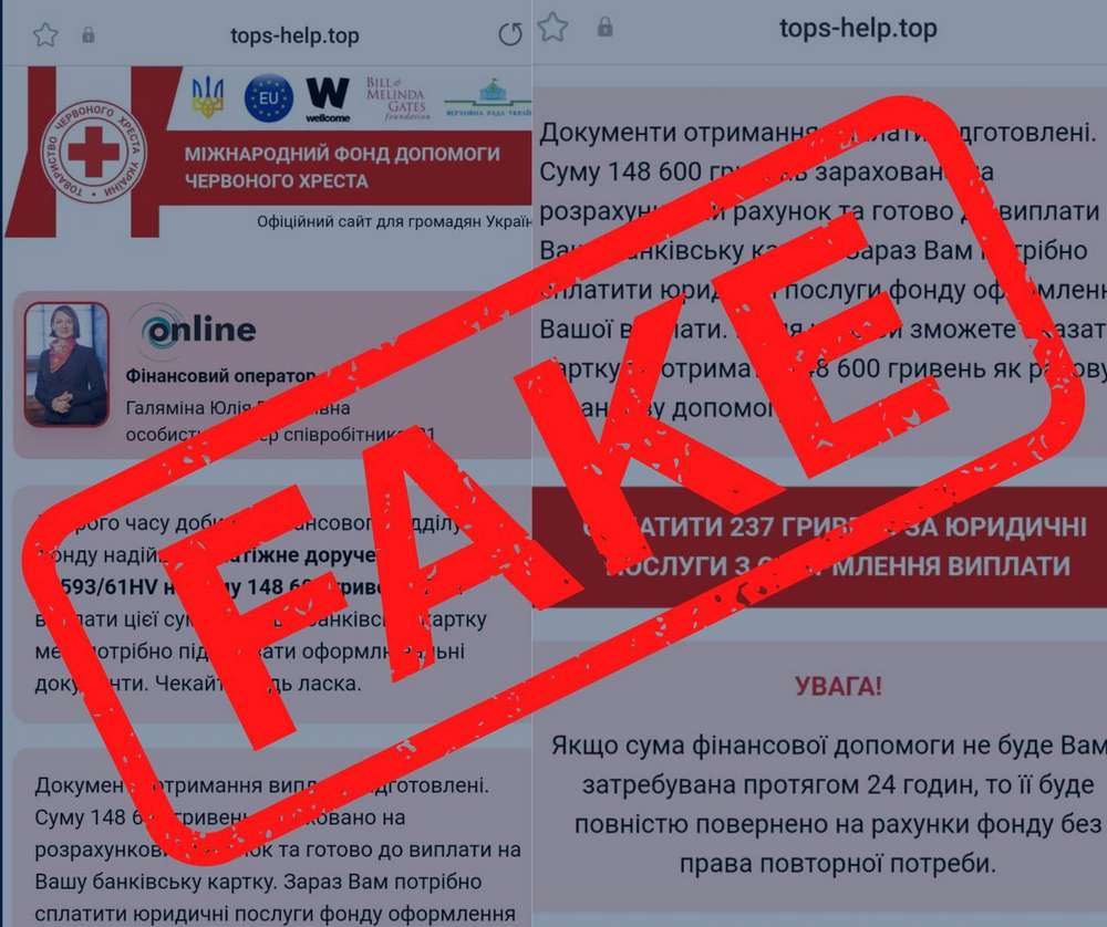 «Це шахраї, які з метою збору коштів від громадян та їх особистої інформації, створили фейковий сайт “Міжнародний фонд допомоги Червоного Хреста”. Ми не маємо жодного стосунку до цього сайту, не займаємося виплатами таких платіжних доручень, а тим паче ніколи не беремо плату за юридичні послуги», – зазначається в повідомленні Червоного Хреста у Telegram .