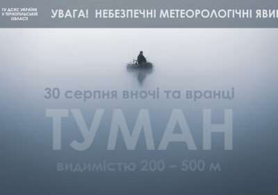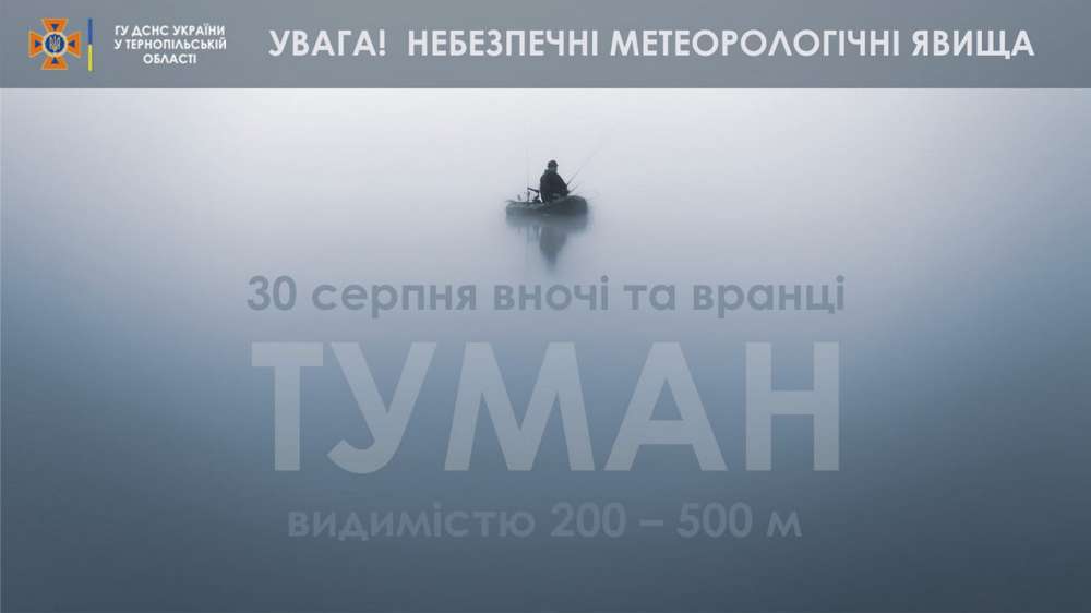 За повідомленням Тернопільського обласного центру з гідрометеорології, 30 серпня в Тернопільській області вночі та вранці очікується туман, видимістю 200 – 500 м.