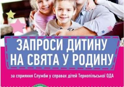 Благодійний фонд «Майбутнє сиріт» оголошує про початок суспільно-благочинної акції «Запроси дитину на свята, канікули у родину». Це дасть можливість дітям-сиратам та дітям, позбавлених батьківського піклування, провести прийдешні свята у родинах, які виявили бажання їх забрати з інтернатного закладу в новорічно-різдвяний період.