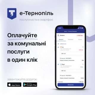 У мобільному додатку «е-Тернопіль» жителі Тернополя та області можуть оплатити за спожиті комунальні послуги в один клік. Для цього необхідно у вкладці «Комунальні платежі» ввести адресу, натиснути на неї і система покаже поточний баланс для сплати за спожиті послуги (газ, водопостачання, електроенергія тощо).