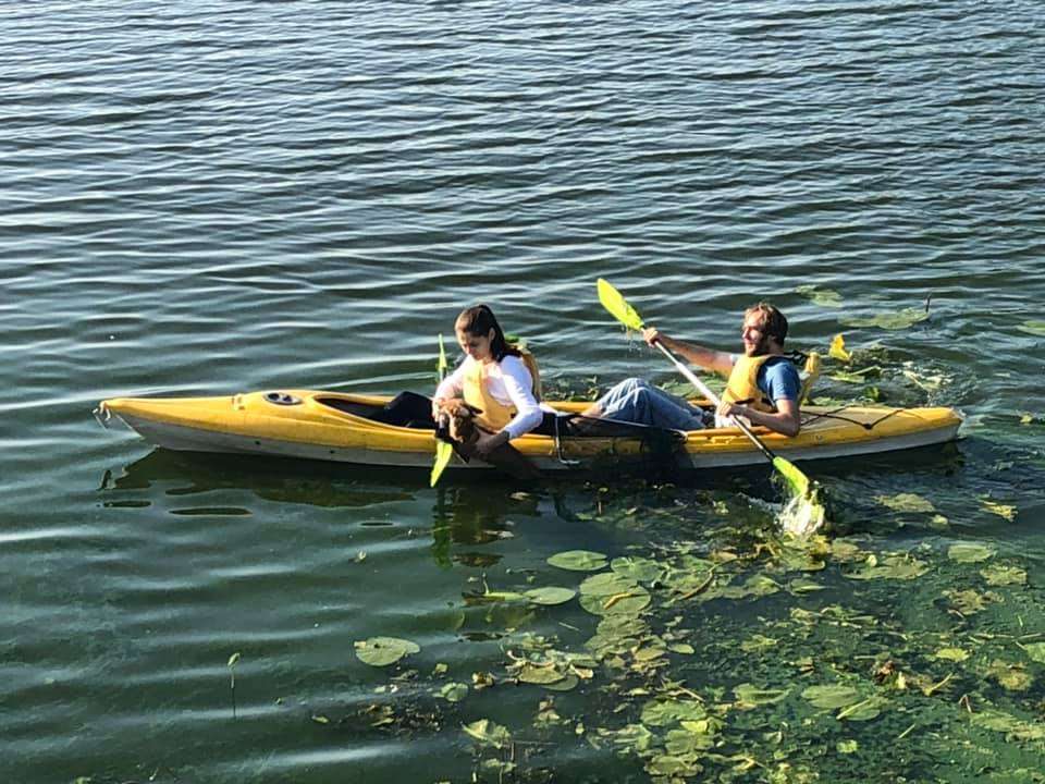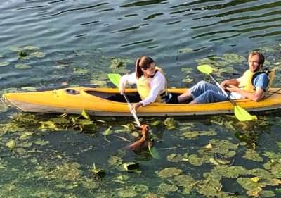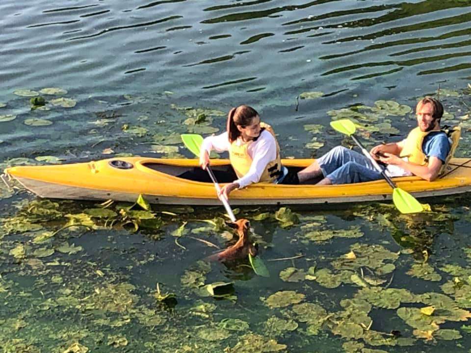 Недільний ранок. Лисиця перепливаючи через гребний канал заплуталася у жилці та лататті. Її врятували молоді люди які пропливали поруч на байдарці. Подяка Наталі і Саші!