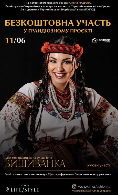 Для популяризації української автентичної вишиванки тернополян та усіх охочих запрошуємо до участі в унікальному творчо-соціальному проєкті «Вишиванка – міст між традицією та сучасністю».