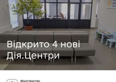 Мінцифра розширює мережу Дія.Центрів. Відтак, нові модернізовані ЦНАПи розпочали роботу в 4 населених пунктах: Бориславі (Львівська область), Байківцях (Тернопільська область), Білоберізці (Івано-Франківська область), Чернівцях (Вінницька область). Про це повідомила директор директорату системного розвитку надання адміністративних послуг в Міністерство цифрової трансформації України Олеся Цибулько.