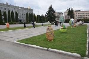 Головну окрасу – найбільшу писанку, що стоїть в центрі площі, спільно підготувало управління культури та мистецтв із жіночою частиною колективу мерії.