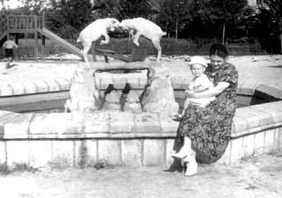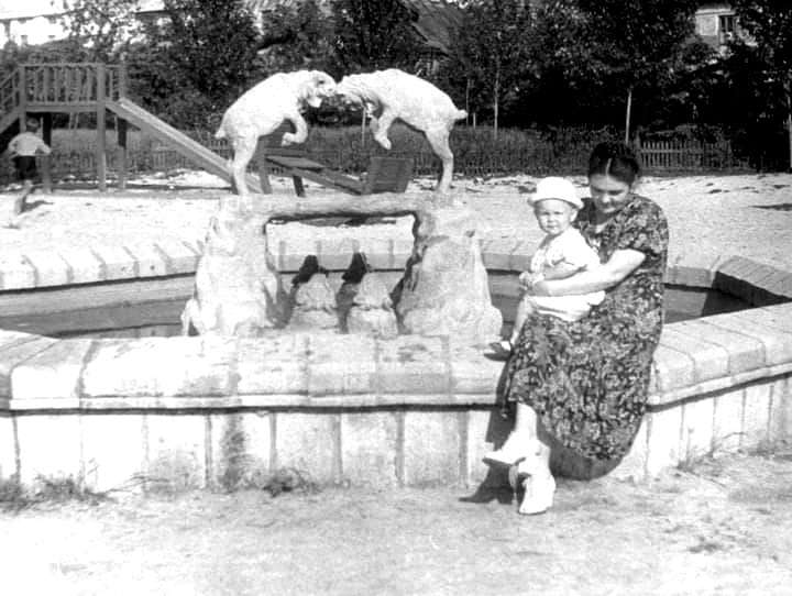 «Цей фонтан був на дитячому майданчику в парку ім. Т. Г. Шевченка. 1950-ті. Зараз на цьому місці стоїть металічний ,, Вуйко Стефан”», – пояснив пан Віктор.