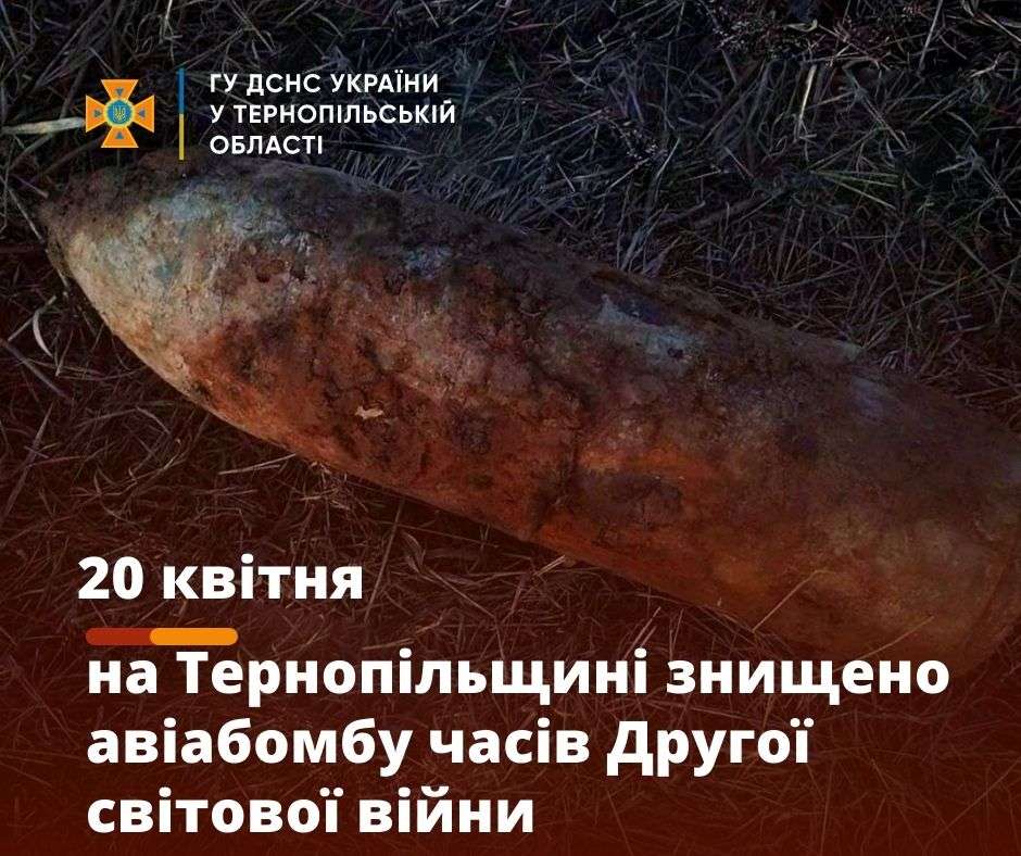 У с. Курівці Тернопільської територіальної громади на присадибній ділянці місцевого мешканця виявлено одну авіабомбу АО-25 часів Другої світової війни.