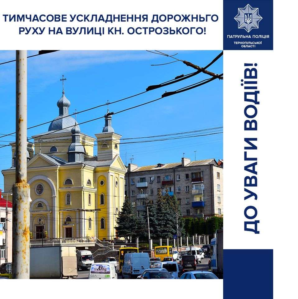 Патрульна поліція попереджає про можливе ускладнення руху транспорту вулицею Князя Острозького в м.Тернопіль у п’ятницю, 28 серпня.