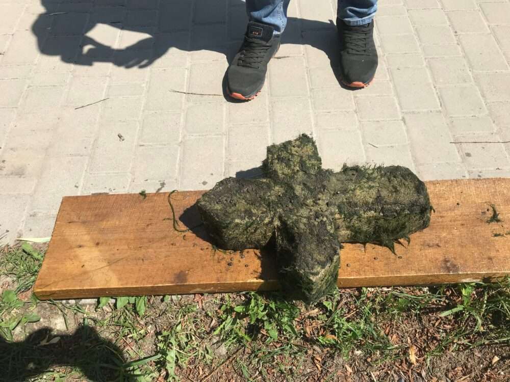 Хрест висихає від води біля дзвіниці церкви Св. Покрови. А далі? Далі буде”, – пише Віктор. “Напевне дуже знаково, що хрест віднайшли саме в час героїчної оборони України від тих, хто свого часу хрести нищив. Тому захотілося написати такий коментар: «Спаси, Господи, людей Твоїх  і благослови насліддя Твоє,  перемоги благовірному народові на супротивників даруй і хрестом Твоїм охорони люд Твій»!”, – коментує цю історію о. Олег Гронський.