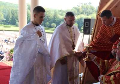 Свячення  митрополит здійснив під час Архиєрейської  Літургії на подіумі Марійського духовного центру «Зарваниця».