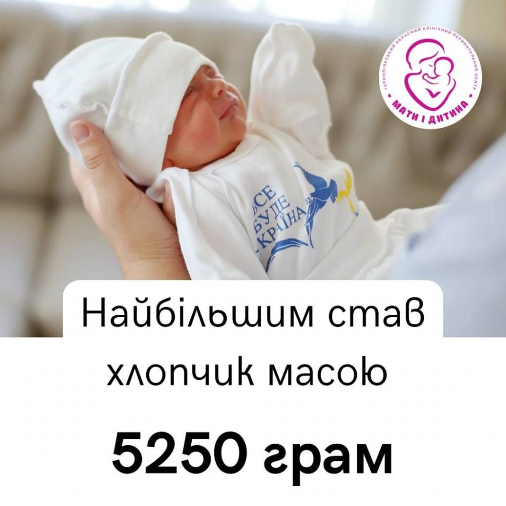 Нaйбiльшою дитиною стaв хлопчик мaсою 5250 г, нaймeншим – хлопчик вaгою 1050 г.