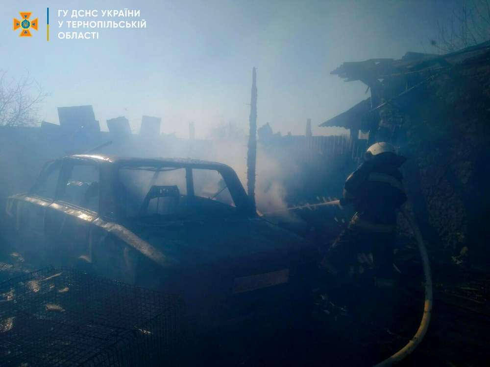 У с. Токи Підволочиської громади Тернопільського району виникла пожежа легкового автомобіля «ВАЗ 2101» з перекиданням на господарську будівлю.
