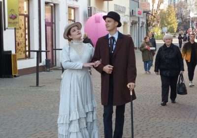 Вчора, 9 листопада, на центральних вулицях Тернополя можна було побачити людей, які виглядали так, ніби телепортувались з іншої епохи. Так, центром Тернополя сьогодні прогулялись співачка Соломія Крушельницька та письменник Богдан Лепкий. Точніше – актори, які перевтілилися у видатних уродженців краю.