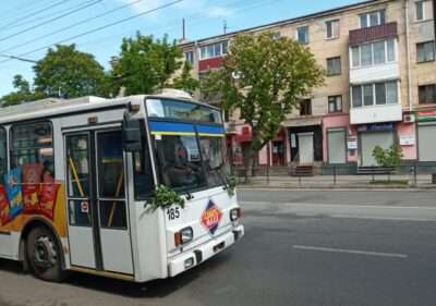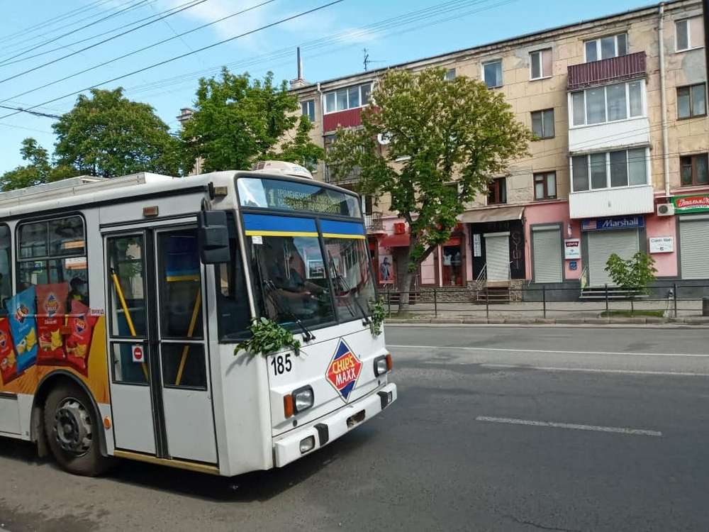 В обласному центрі сьогодні курсують прикрашені зеленню тролейбуси.