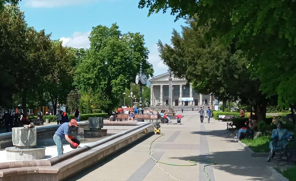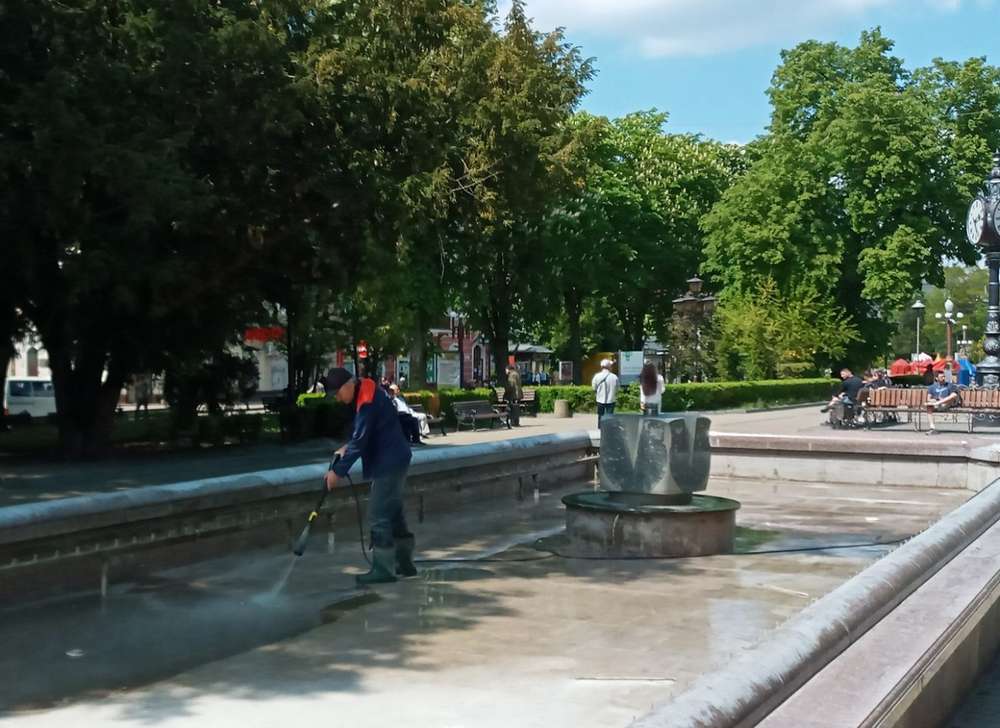 У Тернополі триває підготовка до запуску міських фонтанів. Саме зараз працівники комунальних служб міста проводять профілактичний огляд водограїв, чистять їх і фарбують.