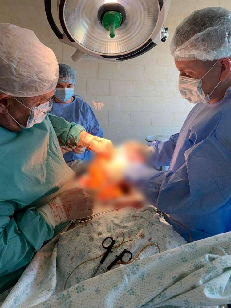 «Фахівці зробили екстирпацію матки з додатками, оментектомію, цитодіагностику (рак лівого яєчника). Операцію виконано в радикальному обʼємі. Загальна маса пухлини становить 9.5 кг», – інформують у медустанові.