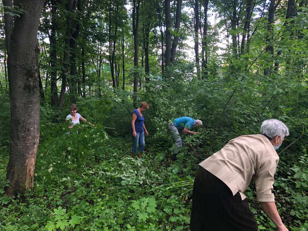 Учасники спільноти “Єднання поколінь” продовжують впорядковувати Грабову алею, що знаходиться на проспекті Злуки поблизу парафії св. І. Богослова в обласному центрі.