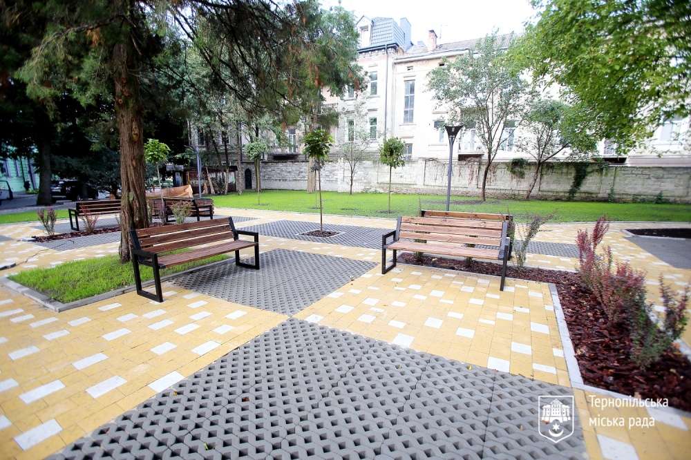 центральній частині Тернополя в сквері на вул. Качали, 1 тривають завершальні роботи з облаштування культурно-відпочинкової зони «Комплексне Трансфер-містечко». Проєкт реалізовується в рамках «Громадського бюджету 2020».